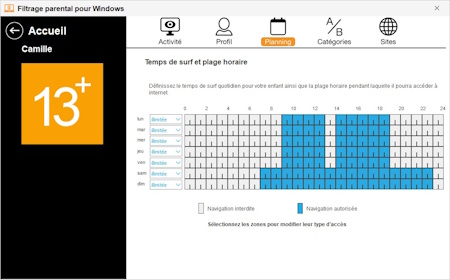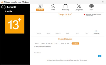 Gratuit et personnalisable, le logiciel filtrage parental assure la sécurité de vos enfants sur Internet en bloquant l'accès aux sites inappropriés. Il vous permet de gérer la liste des sites interdits, de contrôler les horaires de connexion et l'accès aux applications ou encore de consulter l'historique des sites visités.